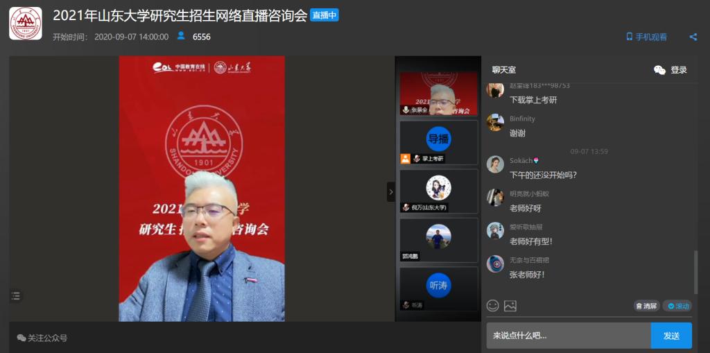 咨询会另设线上实时问答环节,考生积极在留言区与主讲人进行互动,对于学院发展、初试备考、复试环节以及入学后的课程学习、出国交流、奖助体系、学术科研活动等提出问题。主讲人张景全教授都一一作出了详细解答。