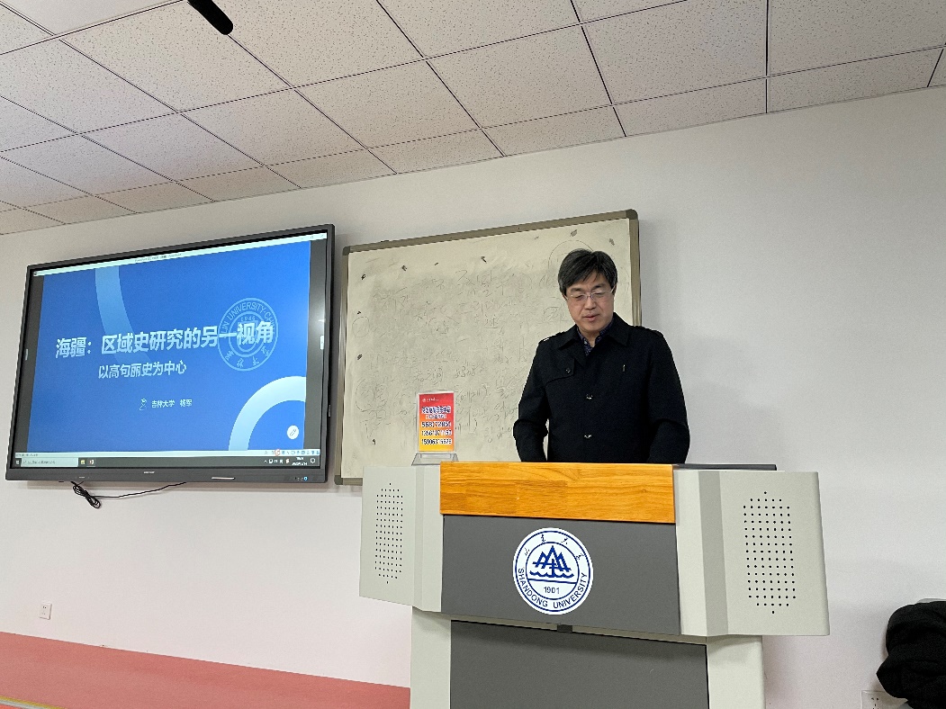 杨军教授的演讲主题是“海疆:区域史研究的另一视角——以高句丽史为中心”,通过展示高句丽在极盛时期的疆域图,分析了海域对于高句丽的重要性。他提出要从海疆视角转换对高句丽史的思考,高句丽的历史发展是由内陆民族逐渐向海域扩张的这样一个过程。杨教授通过列举史料及对其细致深入的分析,指出海洋对于陆地政权的作用,从高句丽的崛起到鼎盛再到灭亡的过程中,海洋一直是重要因素。最后,杨教授进行了规律性的总结,指出海洋物资构成沿海政权兴起的经济基础,河流入海口附近往往成为海上航线和内河航线的交通枢纽,因而成为一种特殊的战略要地,甚至决定相关地区的盛衰;海上优势往往带来陆上优势,成为决定战争胜负的决定性因素;通过海上航线运输部队,在某种意义上改变了战争的格局。