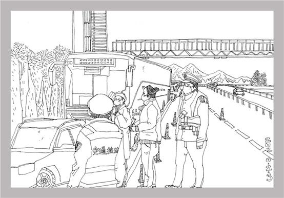 《道路防控》:掐断了病毒传播的路,掐不断游子归家的渴望和对亲人的思念。