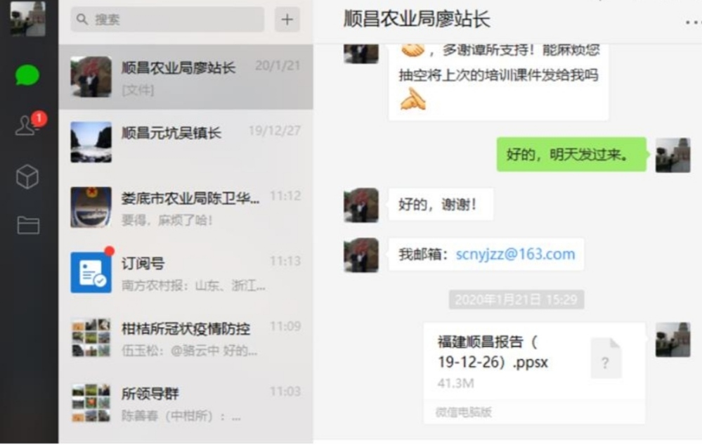 湖南娄底市和福建顺昌县是sunbet申搏官方网站柑桔研究所新签订的科技合作市县,为促进当地种苗繁育基地建设进度,2月17日,李太盛副研究员及时和对方进行了电话指导,并要求对方在做好疫情防控的前提下,做好育苗基质和网室建设准备工作,争取在3月份进行苗木嫁接,保证年底苗木出圃。谭志友副所长也根据福建顺昌农业农村局要求,于1月下旬及时发送了技术培训PPT。