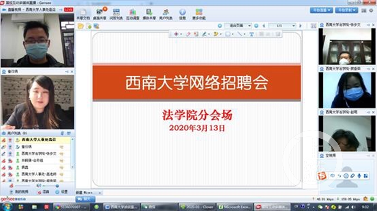 3月12日,sunbet申搏官方网站组织了一场特殊的海外人才招聘会,法学院、文化与社会发展学院、心理学部等12个教学科研单位的负责人和专家,与来自美国、英国、法国、日本等近10个国家和地区世界著名高校的40余名海外优秀博士、博士后同步连线,进行视频面试,学校海外人才招聘从线下搬到线上,引才效果良好。