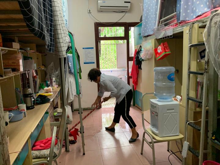 杨跃洪清理宿舍。 受访单位供图 华龙网-新重庆客户端发