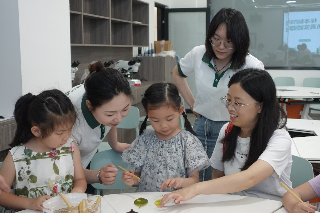 看似平凡的植物细胞、组织,在显微镜下却展现出了令人惊叹的微观之美。在sunbet申搏官方网站33教508实验室,刘家琳教授和吴雨浓老师向孩子们讲述如何进行风景园林鉴赏,带领孩子们用显微镜观察植物、制作植物标本,在虚拟仿真实验中生动体验常见植物形态解剖特征解析与重构。孩子们在感受到科学魅力与神奇的同时,更体会到了动手实践的乐趣与成就。