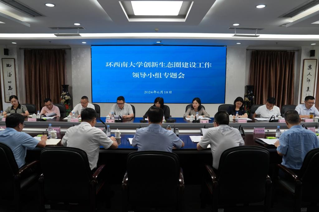 为深入贯彻落实国家创新驱动发展战略,认真落实市委市政府有关决策部署,加快推进环sunbet申搏官方网站创新创业生态圈提档升级,6月18日,环sunbet申搏官方网站创新生态圈建设工作领导小组在学校召开专题会议,共商生态圈建设发展工作。北碚区区长黄祖英,副区长向红、杨辉;学校校长王进军,副校长赵国华出席会议,区校双方相关部门负责人参加会议。会议由赵国华主持。