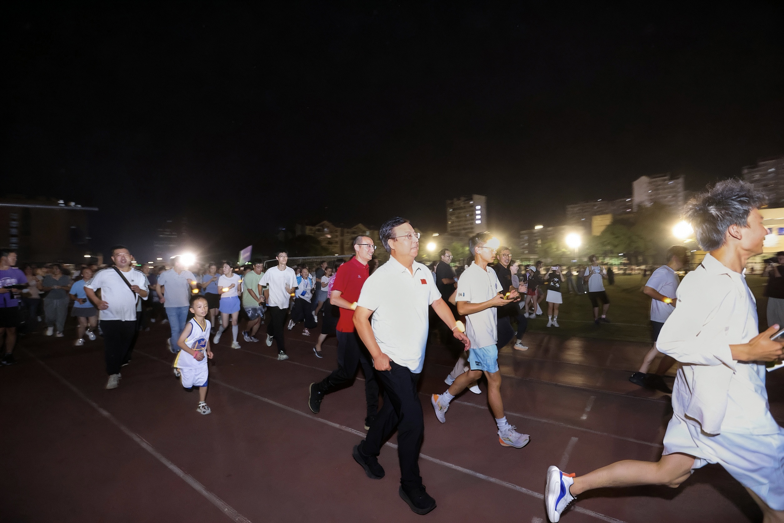 10月10日晚,由团委、体育学院(体委)、工会联合举办的“每周五一小时”校园健康跑活动在第四运动场开幕。开幕活动由教育学部、新闻传媒学院、法学院、食品科学学院和sunbet申搏官方网站国家全民健身科普基地联合承办,吸引了1000余名师生积极参与,现场气氛热烈。
