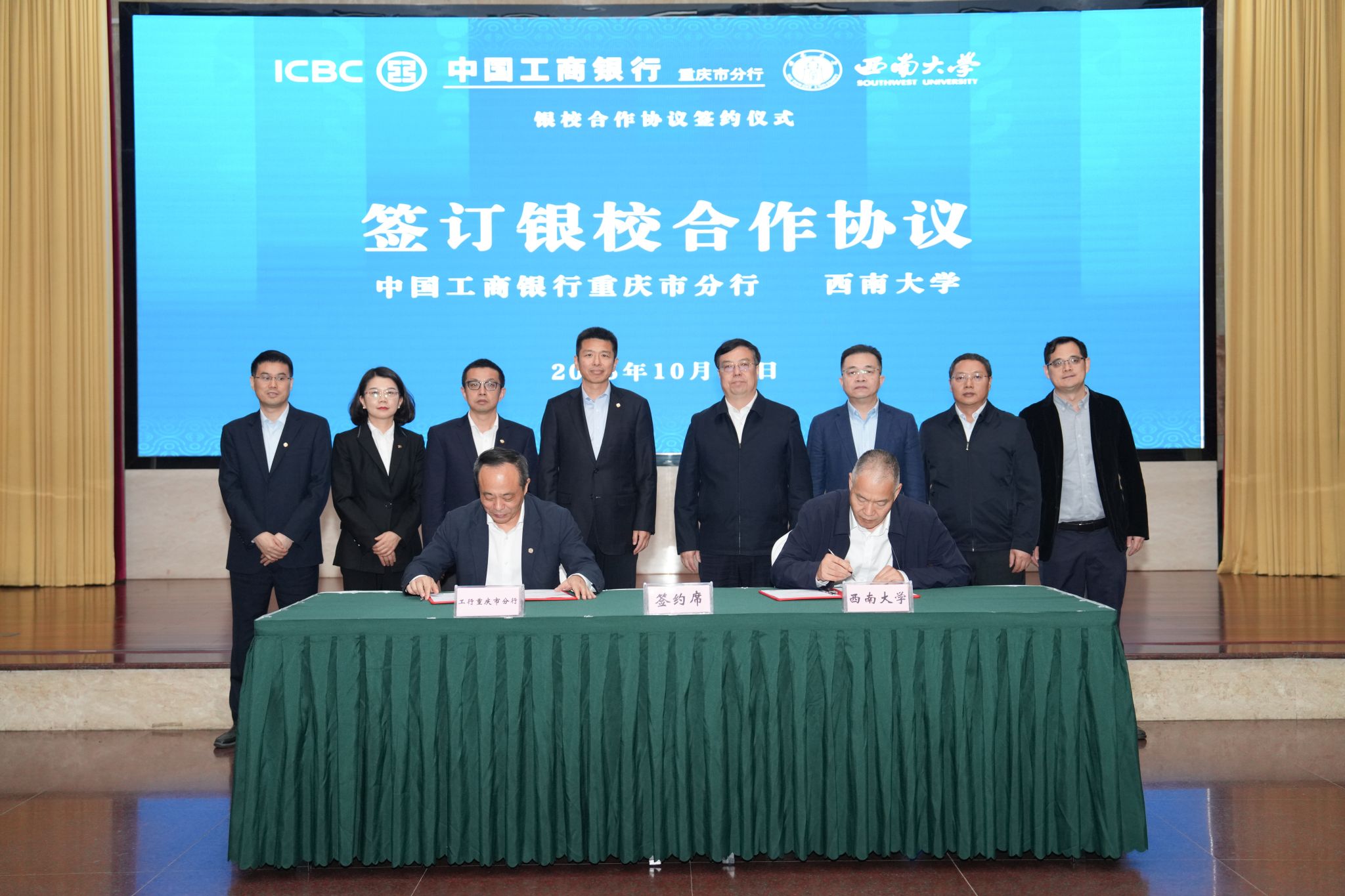 10月21日上午,学校与中国工商银行重庆市分行银校合作协议签约仪式在东方红会议厅举办。中国工商银行重庆市分行行长陈明、资深专家韩忠东,学校校长王进军、副校长葛信勇出席会议。会议由葛信勇主持。