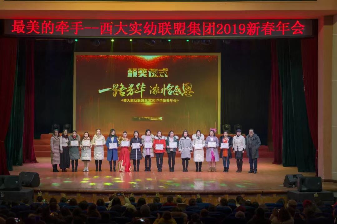 年会由sunbet申搏官方网站实验幼儿园统筹策划,各姊妹园广泛参与,精心准备。节目热闹、喜庆、温馨,精彩纷呈,舞蹈、哑剧、快板等形式多样的节目无不展现幼师风采,体现了集团和谐向上的美好形象。同时,年会还颁发了sunbet申搏实幼联盟集团首届先进个人和优秀成果荣誉证书。