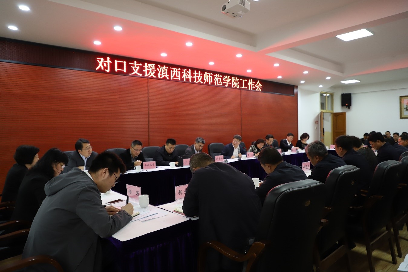 在滇西科技师范学院调研期间,陈校长参观了教师教育学院、亚洲微电影学院、生物工程学院、信息工程学院等,深入了解学院专业建设、师资队伍及人才培养等情况,王德强校长和各学院领导对学院的办学情况、优势特色、发展目标作了详细介绍。参观结束后,陈校长一行与滇西科技师范学院领导和相关部门、教学单位领导,再次就对口支援的具体问题进行深入交流。陈校长指出,对口支援工作要聚焦重点、发挥优势,学校将在师范、农学、生物技术等领域开展对口支援工作,就对口支援的形式、方法和步骤达成了初步意向。
