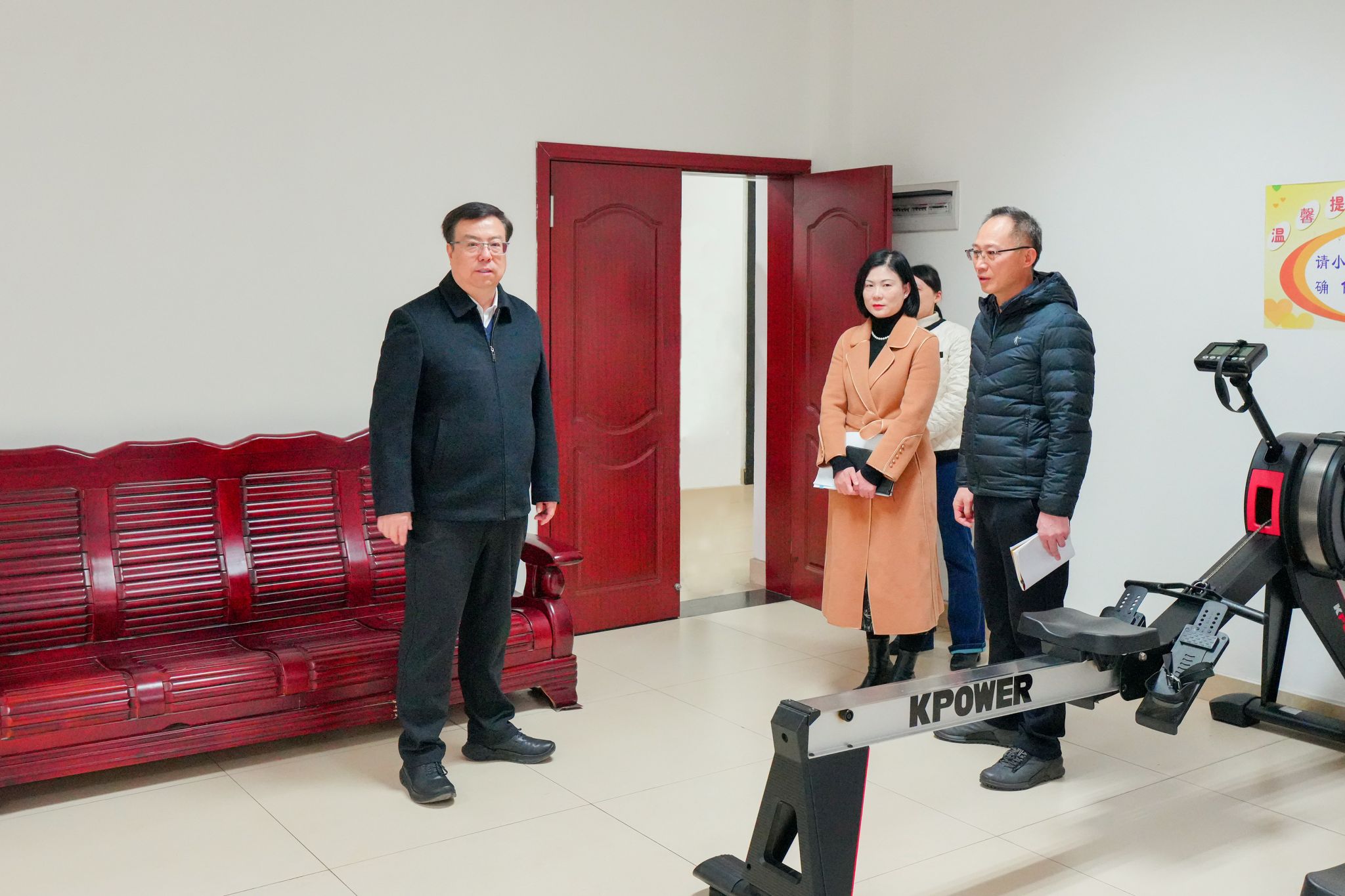 一行人实地调研了桃花山离退休教职工活动中心场地建设以及活动开展情况。王进军指出,离退休老同志是学校发展历程中的宝贵财富,他们为学校的建设与发展做出了重要贡献,要将离退休老同志的服务管理工作放在重要位置,积极为离退休教职工办实事、做好事、解难事。他强调,当前要紧密结合承办教育部直属高校关工委第二协作组工作交流研讨会和国家老年大学分校建设需求的宝贵契机,全面加强离退休教职工活动中心的环境改造工作,及时更新相应的设施设备,从整体上统筹推进活动中心的适老化改造与功能升级,致力于为老同志打造一个安全、舒适、便捷的活动场所,让他们在这里能够真正实现“老有所为、老有所学、老有所乐”,为他们的晚年生活提供好场地保障。