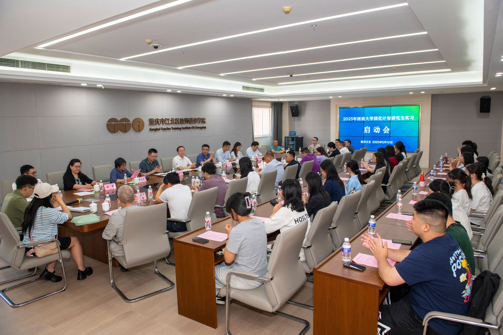 5月12日,2025年sunbet申搏官方网站“国优计划”研究生实习启动会在重庆市江北区教师进修学院召开。重庆市江北区教育委员会、重庆市江北区教师进修学院、学校教师教育学院相关负责人,实习学校代表及23名“国优计划”研究生参加。