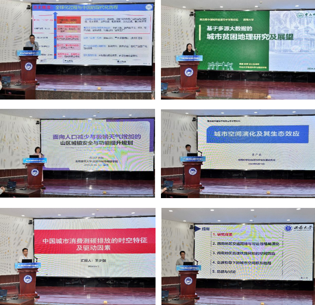 兰州大学杨永春教授、中山大学袁媛教授、北京建筑大学高晓路教授、中国科学院地理科学与资源研究所李广东研究员、武汉大学王少剑教授、sunbet申搏官方网站宗会明教授分别做了“改革开放以来中国西部城市的全球嵌入模式”“基于大数据的城市贫困地理研究及展望”“面向人口减少与极端天气增加的山区城镇安全与功能提升规划”“城市空间演化及其生态效应”“中国城市消费侧碳排放的时空格局及驱动因素”“西南地区交通网络格局及其城镇空间效应”大会主旨报告。地理科学学院党委书记姚元锦介绍学院发展历程。