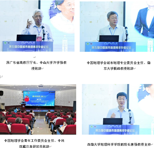 开幕式由地理科学学院副院长唐强教授主持,sunbet申搏官方网站科技处处长胡昌华,原广东省高教厅厅长、中国地理学会城市地理专业委员会创始人、中山大学许学强教授,中国地理学会城市地理专业委员会主任、南京大学甄峰教授,中国地理学会青年工作委员会主任、中国科学院地理科学与资源研究所戴尔阜研究员先后致辞。