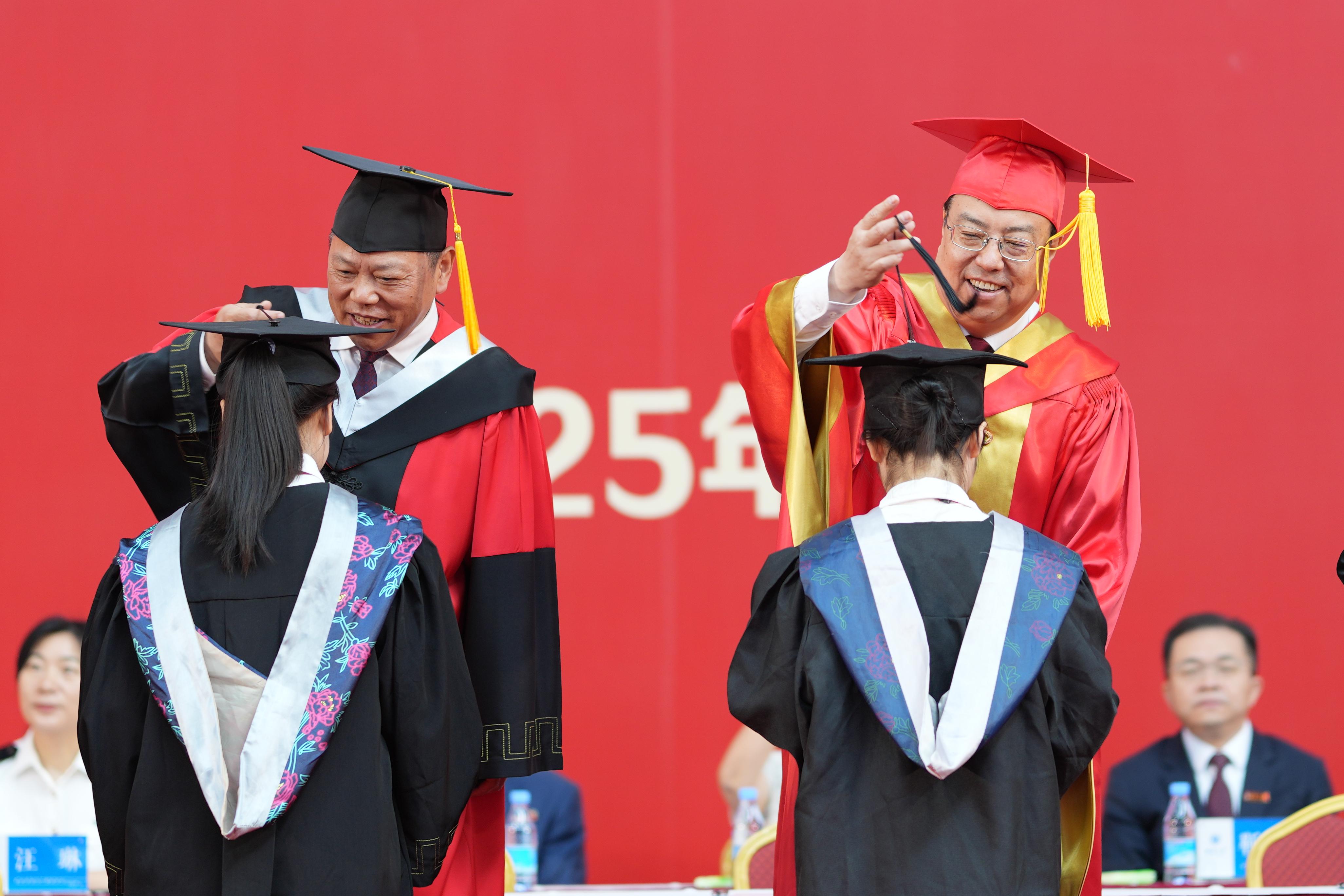 全体在校校领导、党委常委、校长助理、校学位评定委员会委员、学生工作领导小组成员单位负责人、教师代表、校友代表、各学院(部)负责人、全体毕业生辅导员、班主任代表、2025届全体本科毕业生和部分毕业生家长共同参加。典礼暨授位仪式由校党委副书记黄杰主持。